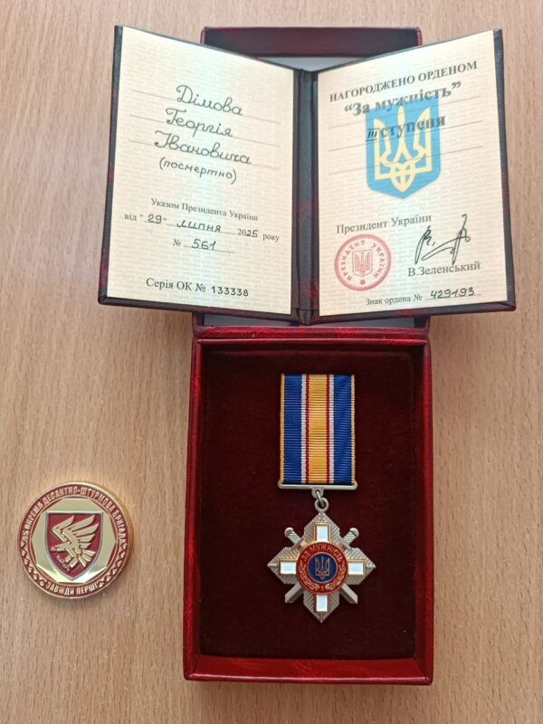 Разом з орденом родині також вручили пам’ятний медальйон (коїн) 95-ї окремої десантно-штурмової бригади, у якій служив Георгій Іванович. Цей символ вдячності та честі став знаком пам’яті про його мужність і самопожертву.