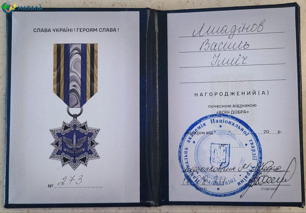 Подання на нагородження Василя Младінова підготував голова Благодійного Фонду «Незламність» В’ячеслав Ільченко, він і вручив відзнаку. З ним Василь співпрацює з початку повномасштабного вторгнення, разом вони проїхали тисячі кілометрів задля допомоги військовим та цивільним.